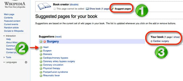 - Suggest pages: This feature is pretty interesting. This option shows you the most relevant pages for your book. For example, Cardiac surgery. Click the suggested pages you want to add in your ebook. You can find the pages added to the book at the right side of the page.