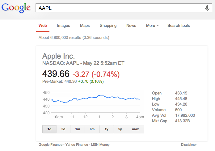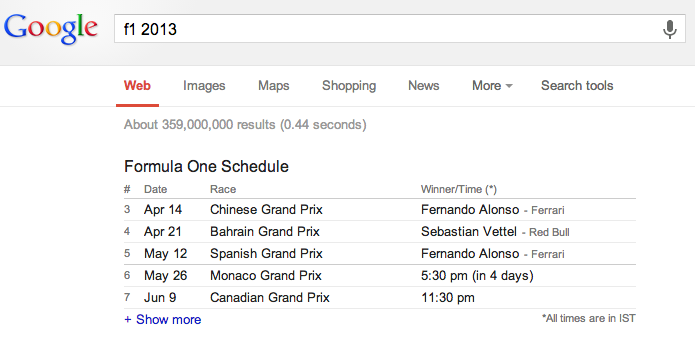 Realtime stocks, Definitions, Movie Timings, Flight Schedules, (phew!) Search by Voice!, and more!