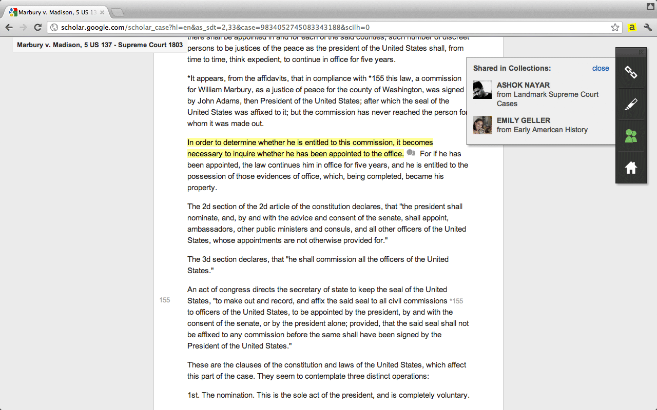 Annotary also has a social feed that let you follow other users for their bookmarks. This is similar to Stumbleupon, with the added feature that one can see highlighted text with notes on these pages. The “Explore” option lets you explore collections of marked pages other users, even add some of your own if it’s allowed. The collections can also be shared to users by adding members to the collections. These members can add their own set of marked pages, even modify others.