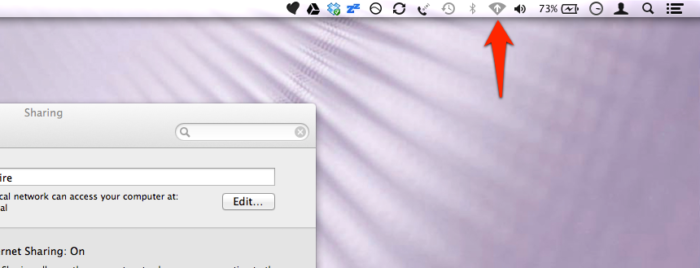 Any device, a mac, a windows pc, notebook, even a mobile or a tablet can connect to the internet through this Wi-Fi network. You can know that you have shared your mac’s internet connection from the up arrow icon that is in place of your regular Wi-Fi icon from the menu bar. If you want to stop sharing the active internet connection, you can switch off the Wi-Fi and check off the Internet Sharing option in the Sharing pane. It’s that simple!